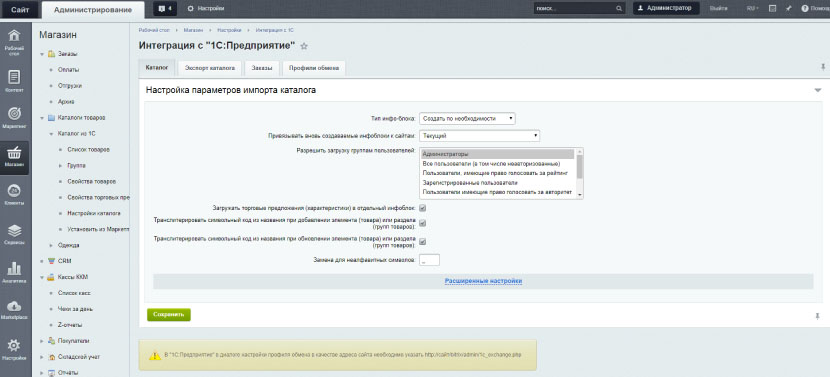 - Масштабный онлайн-магазин с различными типами цен, 2-3 складами и опцией покупки «комплектов продукции». Для такого проекта следует выбирать версию «Бизнес».